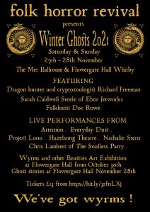 In addition to this, on Sunday from 13:00-16:45 at Flowergate Hall is Winter Ghosts 2021: We have Wyrms Ghost Stories, a collection of original and published Ghost Stories being read all for the price of piece of cake!
